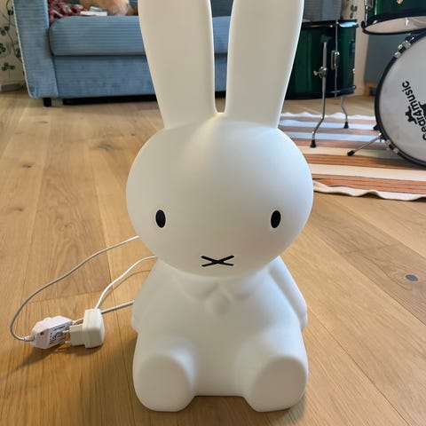 Mr Maria Miffy XL lampa i vit färg. Lampan är formad som figuren Miffy och har en sladd med kontakt. Passar exempelvis i barnrum eller som dekorationsbelysning i hemmet.