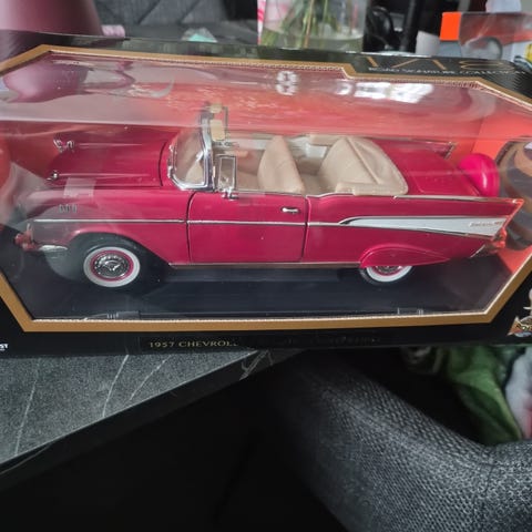 1923 Maxim C-2 modellbrandbil i röd färg. Modellen är tillverkad i die-cast metall med detaljer i guldton. Levereras i originalförpackning med genomskinligt fönster som visar bilen. Passar som samlarobjekt eller prydnad. Brandbil i fint skick. Men lådan har desvär lite märken her och där. Men den här altid stått i lådan.700 kr eller säljas till bästa godkända priset. Finns i Sjöbo. Skickas inte..
