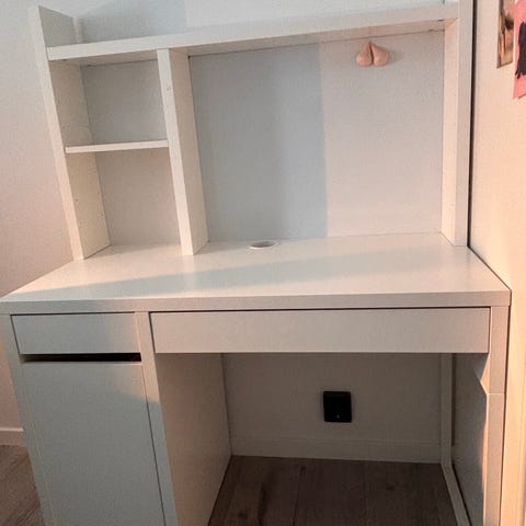 Fint skrivbord med överskåp endast något /några märken/liten spricka på lådan se bild 2.