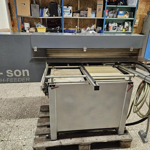 2300 mm långa tvärsnittsstängsel, fram-till-bak, 2 st sido-/korsklippningslinjer för upp till 87" tvärsnitt, (1) fram & (1) bakom tryckbalk; (3) frontmonterade luftflötbord för förflyttning panel från rivläge till tvärsnittsläge, (24" x 78" vardera, varav 2 är rörliga).