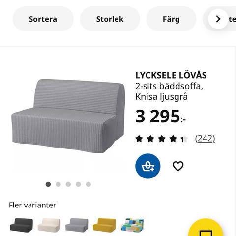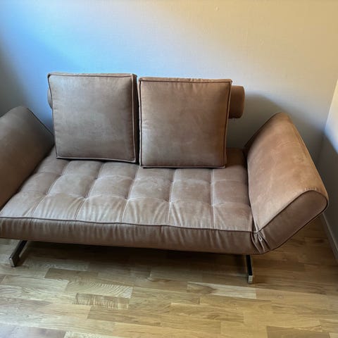 Grå bäddsoffa säljes i gott skick. Sparsamt använd, mest stått oanvänd. Bara att fälla ner ryggstödet på soffan så har du en bred och fin bäddsoffa