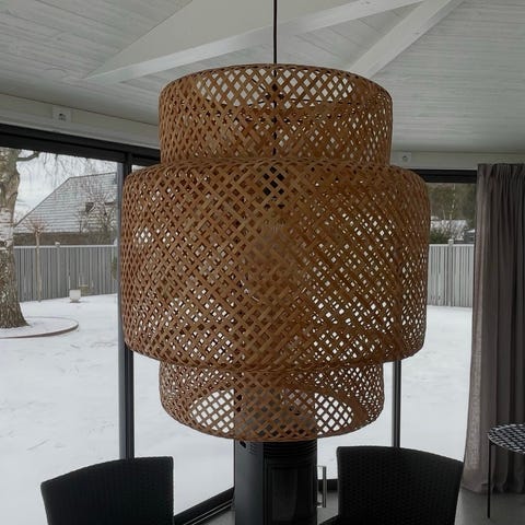 Ikea taklampa i bra skick. Säljer eftersom vi har flyttat in i ett nytt hus och inte behöver dem längre. Säljer ett set om 2. Färgen är transparent rökfärgad och ser bra ut med Edison-glödlampor.