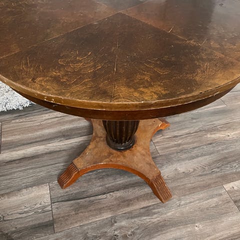 Svart matbord med 30 cm uppfällbar klaff. 2 stolar