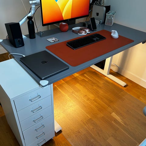 Mycket fint IKEA BEKANT skrivbord, vit färg, som nytt och utan repor. Höj och sänkbart med elektrisk knapptryckning.