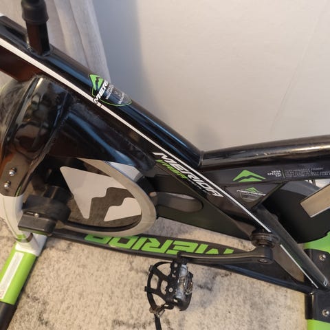 Spinningcykelns svänghjul väger 8 kg och motståndet kan justeras manuellt med friktionsbroms så att du själv kan ställa in intensiteten i din träning helt steglöst.