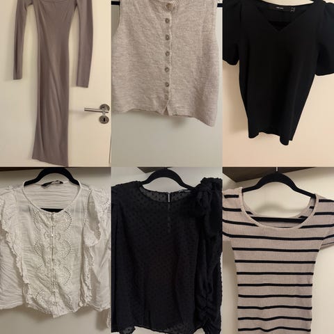 Snyggt klädpaket i storlek XS–S i fint skick. Perfekt mix av plagg som passar både vardag och mer uppklädda tillfällen. Paketet innehåller en mjuk grå stickad tröja, en elegant svart topp med spetsdetaljer, en ljus blus med fina detaljer, en mönstrad topp samt en svart kjol. Plaggen är lätta att matcha och ger många olika outfits. Säljes som paket till bra pris.
