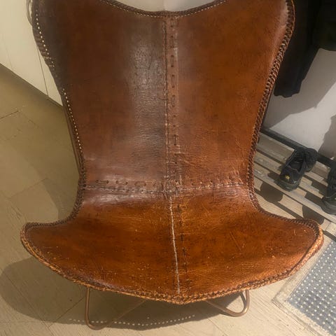 Läder är i färgen konjak och underredet i rostfritt stål