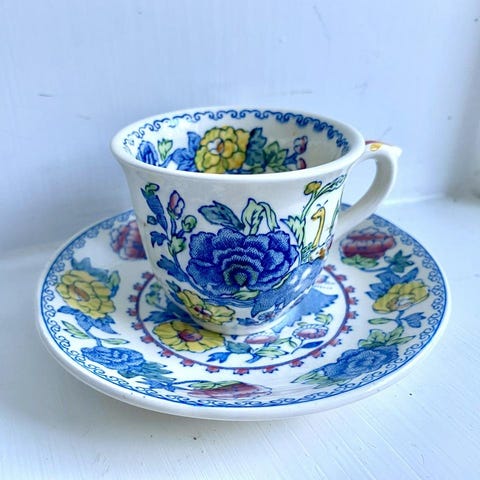 Fem felfria assietter från Mason, England. En sjätte med en liten nagg