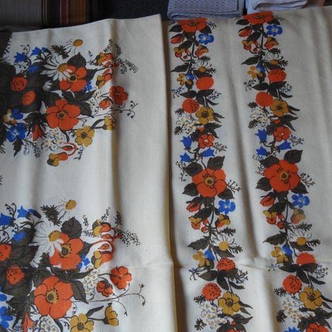 Flerfärgad filt med horisontella ränder i flera starka färger. Passar som pläd i soffa eller fåtölj, som överkast på säng eller som dekorativ duk på bord. Mönstret består av återkommande ränder i olika bredder. Material är ej angivet. Maskinvävt med fransar. Köpt i Mexico.