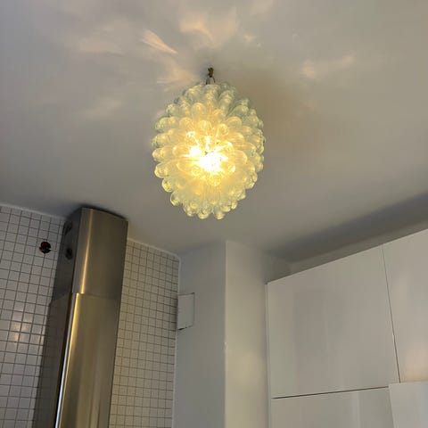 Någon av glasstängerna är trasiga. Ca 5 stycken. De är går att ha i men är halva. Men inget som syns när de hänger med alla andra.