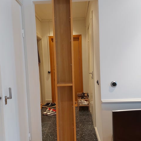Hyllplanen ligger längst ned i hyllan på bilden.