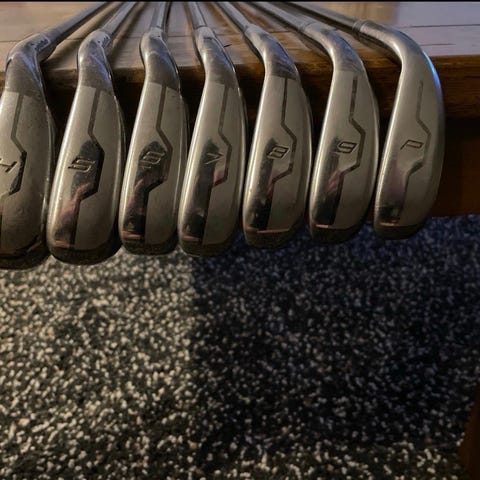 Taylormade P790 järnset med klubborna 4-P. Klubborna har stålskaft av modellen Project X LZ 6.0/120g (stiff) . Greppen är blandade med både TaylorMade-grepp (4-6) som är i okej skick och röda grepp från Golf Pride (7-P) som är i bra skick. TaylorMade P790 2019 är en players distance-järnklubba – alltså designad för bättre golfare som vill ha en spelvänlig kombination av känsla, längd och förlåtande egenskaper.