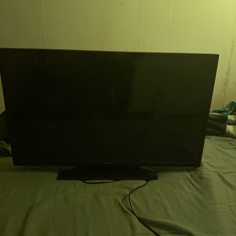 Philips tv med platt skärm och bordsstativ. Passar för användning i vardagsrum, sovrum eller liknande utrymmen. Anslutningar och exakta specifikationer framgår inte av bilderna och kan kontrolleras på modellens baksida eller i manual om tillgänglig.