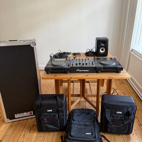 Panasonic ddj-200 dj controller med stativbord. Passar utmärkt för att koppla ihop med en iPad via blåtand. Medföljer en usb-c ljudsplitter så att man kan lyssna i lurar samtidigt som man spelar upp i högtalare.