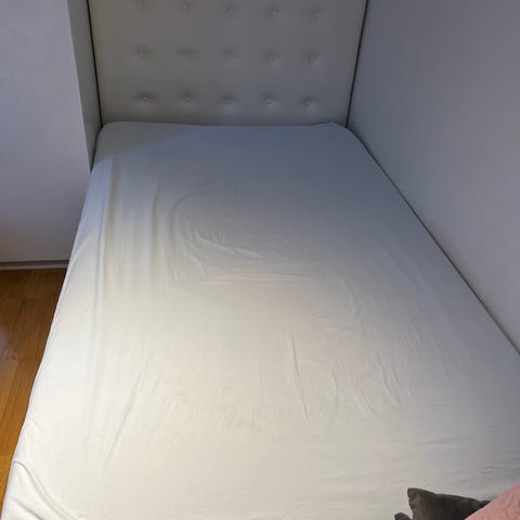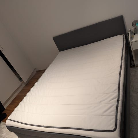 Säljer en helt ny kontinentalsäng byggde ihop dem och sen ångrade storleken så har aldrig legat i sängen sitter på en helt ny drag över på lakan sänggavel sitter ihop med ramen sängen är köpt 2025-11-10 kvitto finns kvar