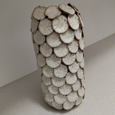 Dot vas från House Doctor, tillverkad av glaserad keramik. Lekfull design med runda cirklar som skapar en sköld runt vasen som ger den en unik och konstnärlig look. En vacker dekoration som den är eller fylld med en bukett blommor.