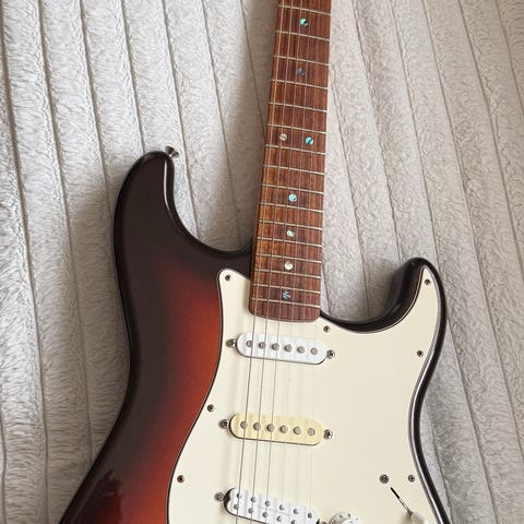 Squier Stratocaster classic 60s vibe. Gitarren är väldigt fint skick och spelar fint.