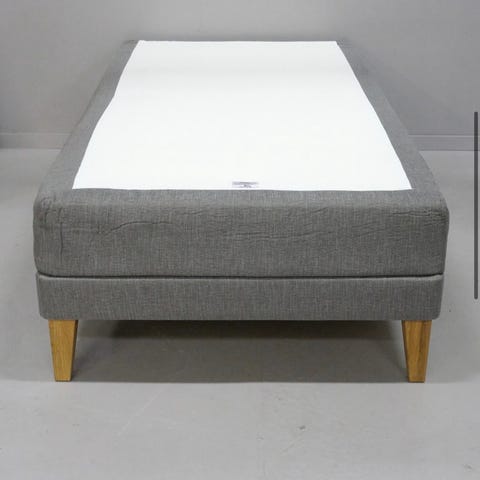 120 cm säng med resårmadrass i vit färg. Sängen består av en resårmadrass med bäddmadrass ovanpå. Välanvänd men helt ok att sova i. Kan användas som extrasäng eller i sommarstuga.