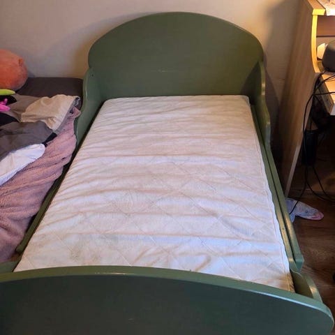 Madrass ingår. Färg bosta på vissa ställen och repig, men hel.