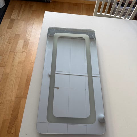 Säljer en badrumsspegel med belysning som vi tagit ner från lägenheten vi ska flytta in till. Innan spegeln togs ner så verkade det som att en av lamporna i belysningen behöver bytas ut. Annars är den i fint skick.
