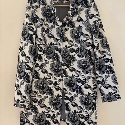 Elegant svart kappa med broderade blommor – Helt ny