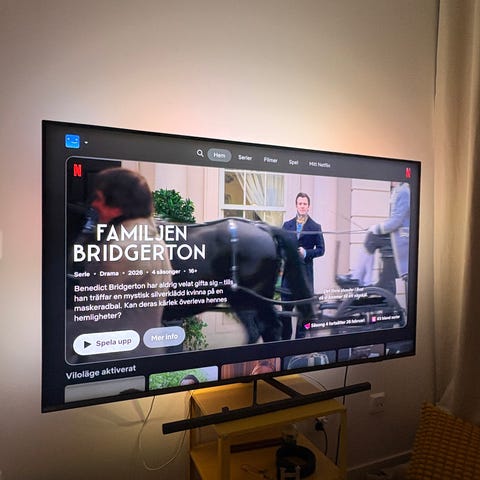 Väl fungerande tv. Tv-bänken kan köpas till för 150 kr.