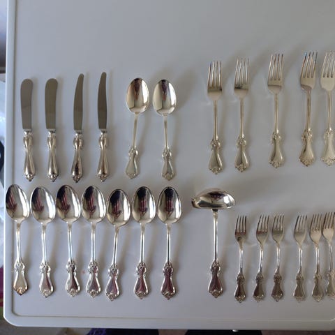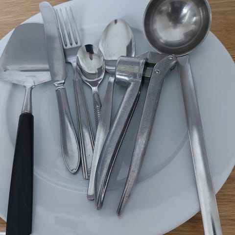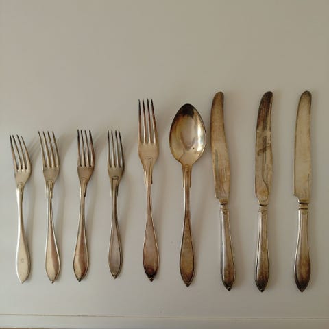 Ett sortiment av bestick med olika märken som GAB, Prima NS och andra. Se bilder för detaljer.23 delar sammantaget.