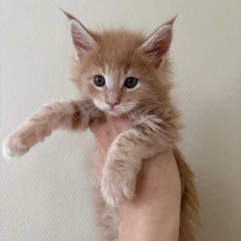 Winifred är vår enda gråa hona i kullen och hon har en liten creamefärgad strimma i ansiktet. Här har vi en riktig goskatt som älskar att ligga i knät och mysa framför tv om kvällarna.