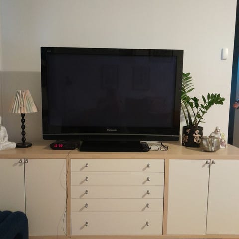 Äldre platt-tv bortskänkes.