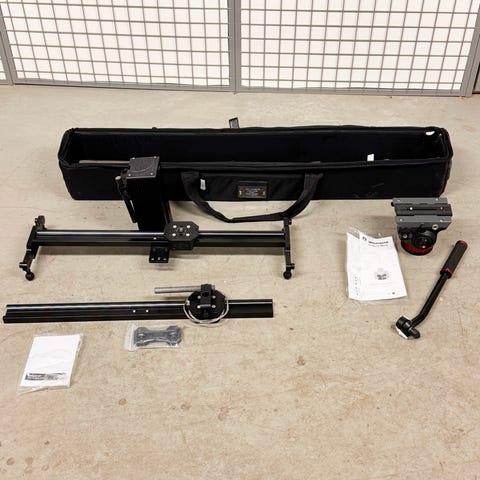 Professionell slider för video och timelapse foto. Troligtvis den bästa slidern på marknaden från välkända Rhino. Railsen är i kolfiber, vilket är stor viktbesparing. Bärväskan ingår.