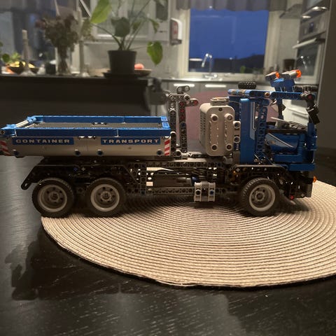 LEGO Technic lastbil i gul färg. Modellen är uppbyggd av Technic-delar med detaljerad hytt, flak och flera rörliga delar. Passar för lek, uppvisning eller som del i en större Technic-samling. Batteri behöver byttas.