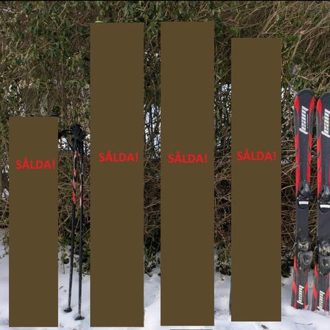 Völkl slalomskidor i gul/svart färg med monterade bindningar. 100 cm långa.
