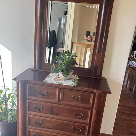 Byrå och matchande spegel