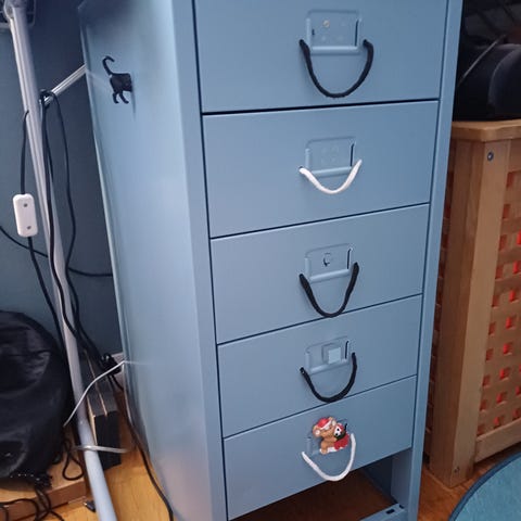 Begagnade i bra skick. Några mindre märken och små skav på lock och sidor förekommer samt mindre repor längst ner vid golvkontakt. Inget som påverkar funktion. Samtliga är hela och stabila.