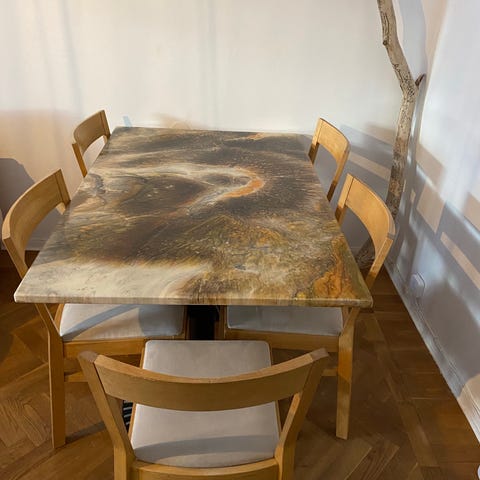 Sista bilden kan man se en liten rispa om man zoomar. Övrigt välskött bord.