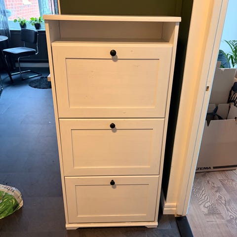 Skohylla/ skoställ från Mio, modell "Koster". Lite nött i färgen på övre hyllplanet efter användning (se bild), i övrigt i bra skick.