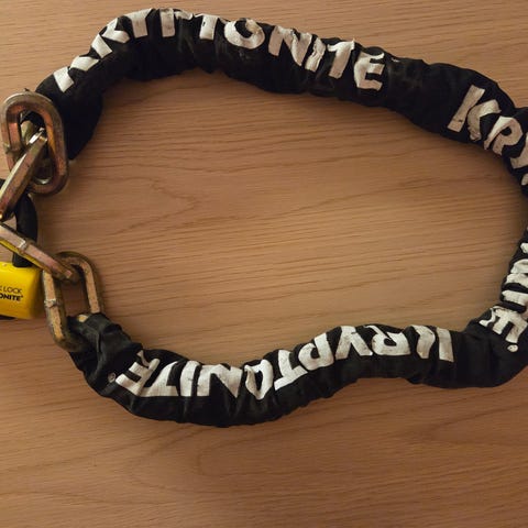 Hiplok cykellås. Fästs runt midjan. Väldigt smidigt men ändå robust.