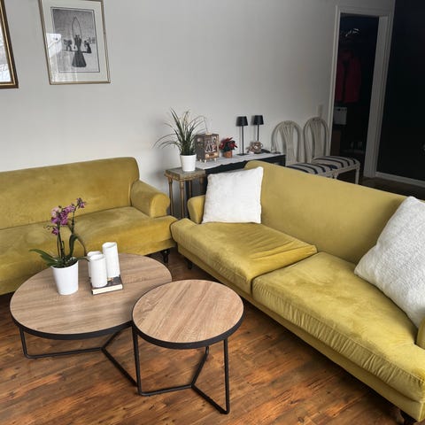 Modern soffgrupp i sammet - perfekt för vardagsrummet!