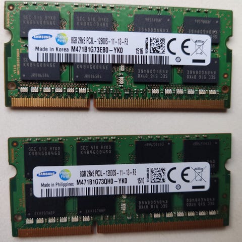 2x8gb RAM-minne, SO-DIMM. Passar bärbara datorer eller kompakta system som använder SO-DIMM-minnen.