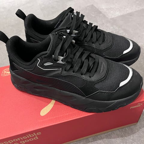 Säljer ett par stilrena Puma sneakers i svart, hög modell med diskret Puma-logga på sidan. Sportig och snygg design som passar både till vardag och fritid.