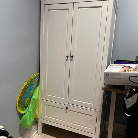 Ikea Sundvik barngarderob vit med klädstång och låda