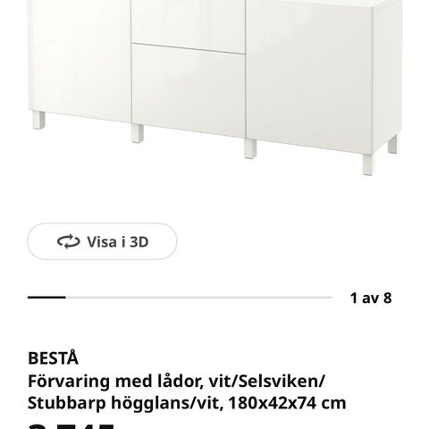 BESTÅ förvaring med dörrar, blankvit. Säljer pga flytt. Mycket bra skick. Liten fläck ovanpå på vänstra sidan (se bild), samt pyttelite småskavanker (se bild)