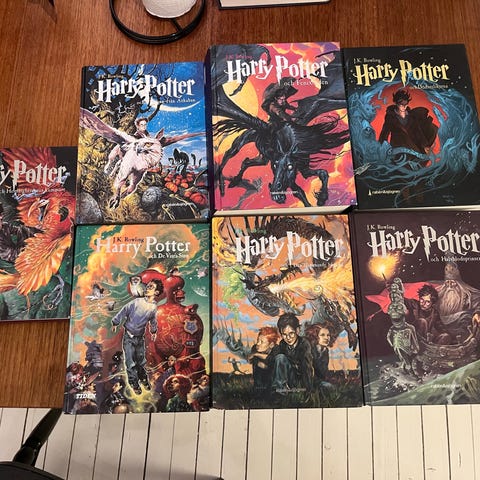 Harry Potters hela bokserie, 7 st inbundna böcker. Nyskick, aldrig lästa.
