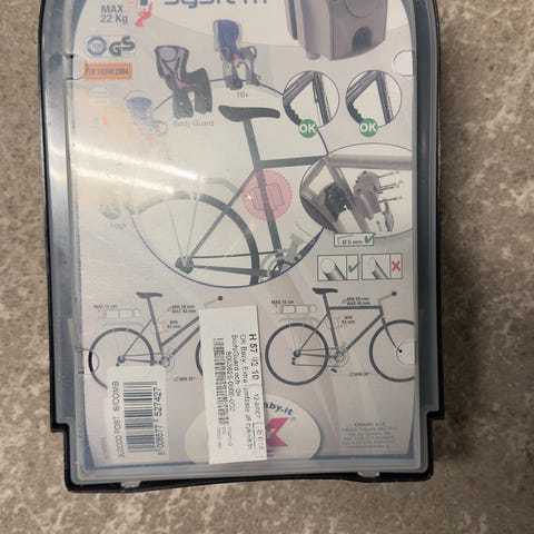 Sparsamt använd cykelsits ’Siesta’ med möjlighet att luta sitsen från Hamax. Låsbar i cykelfästet för att motverka stöld, nyckel finns!