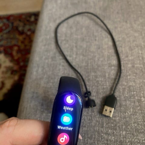 Xiaomi Mi Smart Band 6 aktivitetsarmband i svart färg. Armbandet har en justerbar silikonrem och levereras med originalförpackning och USB-laddkabel enligt bild. Modellen är avsedd för användning som aktivitets- och träningsarmband med pulsmätning och stegräkning samt visning av tid och notiser när den är kopplad till kompatibel mobiltelefon.