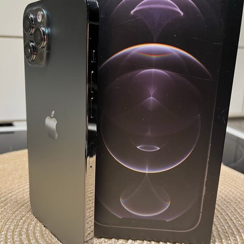 Apple iPhone 12 Pro Max mobiltelefon med 256 GB lagring. Modellen har stor skärm med Face ID, tre kameror på baksidan och Lightning-kontakt. Passar för appar, surf, foto och video med gott om lagringsutrymme för filer och media. Funkar fortfarande bra med senaste iOS. Inget på mobilen har någonsin bytts, allt är original. Inga repor eller skador på skärmen eller chassit. Batterihälsan är på 76%. Nollställd och olåst.