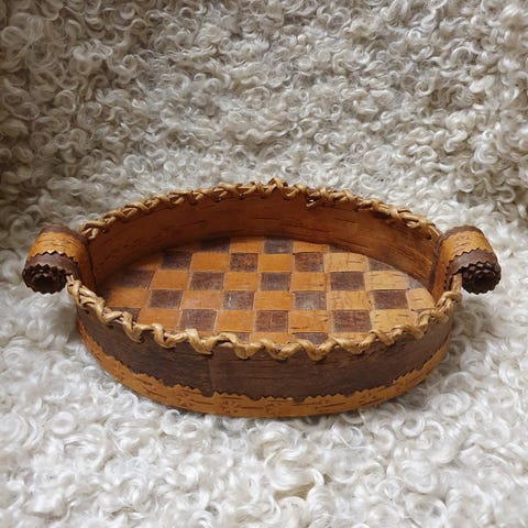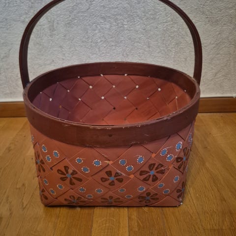 En äldre flätad korg som vi har haft vedförvaring i. Mått: Längd: 57cm, bredd: 36cm, höjd 33cm.