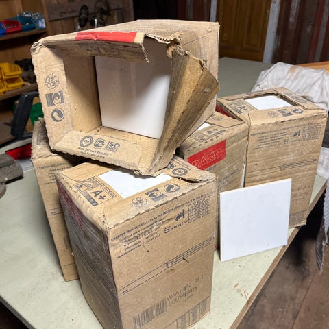 Allt på bilden. Vitt förutom ett paket med gråa bitar