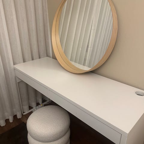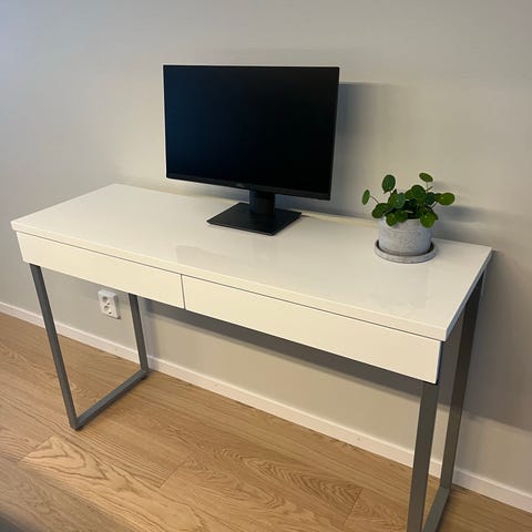 Snyggt skrivbord eller sminkbord med två lådor. Vitt/glansigt. Upphämtas på Östermalm. Inga repor. Priset kan diskuteras.