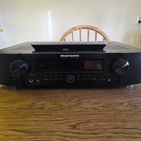 Marantz hemmabioreceiver i silverfärg. Passar för användning i hemmabio- eller stereosystem.